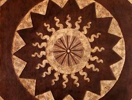 This bark paper ( Papel Amate) is boiled and soaked over night until soft enough for the fibers to pull apart. It is then pounded using a rectangular rock with finger grooves until the pulp is evenly spread out in the shape the paper-maker wants.